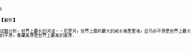 D.世界上最大的平原﹣﹣亚马孙平原