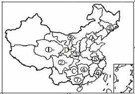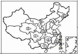 分析 读图可得,①是青海省,②是四川省,③是陕西省,④是湖南省,⑤是安徽省,⑥是福建省,⑦是广西壮族自治区,⑧是吉林省,⑨是内蒙古自治区.