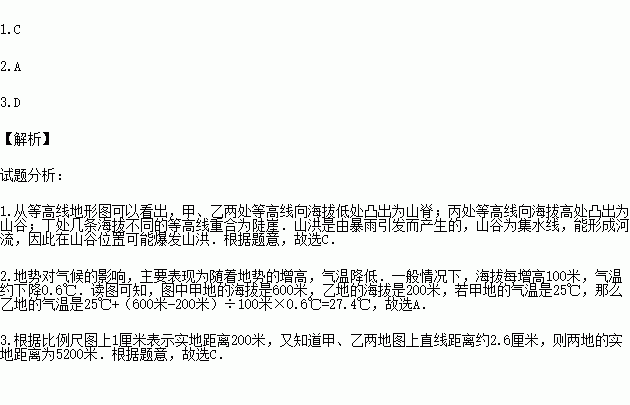 1.可能爆发山洪的地点是 ( )