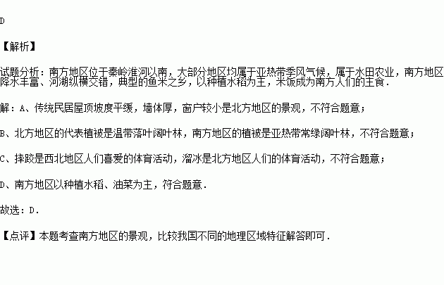 俗话说“一方水土养一方人”,下列自然景观或人文活动与我国南方地区相符的是( )