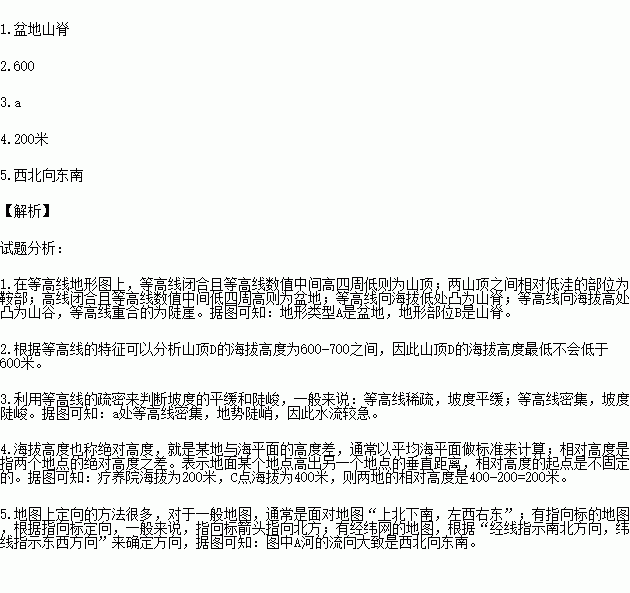 读我国东部某地等高线示意图(单位:米),回答下列问题