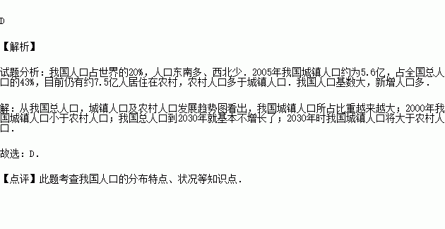 ④2030年时我国城镇人口将大于农村人口.