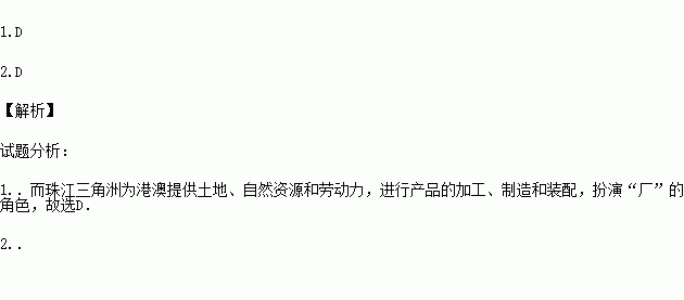 1.Ϊ·¢»ÓÇøÓòÓÅÊÆ£¬Öé½Èý½ÇÖ޺͸۰ĵØÇø³ä·ÖºÏ×÷£¬ÐγÉÁ˶ÀÌØµÄ¡°Ç°µêºó³§¡±Ä£Ê½£¬ÔڸúÏ×÷ÖУ¬¸Û°ÄµØÇøÖ÷Òª°çÑݵĽÇÉ«ÊÇ£º