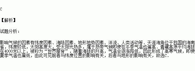 “天涯海角(位于海南省)隆冬暖,青藏高原盛夏寒”,关于这两地气候特征的成因,说法正确的是( )