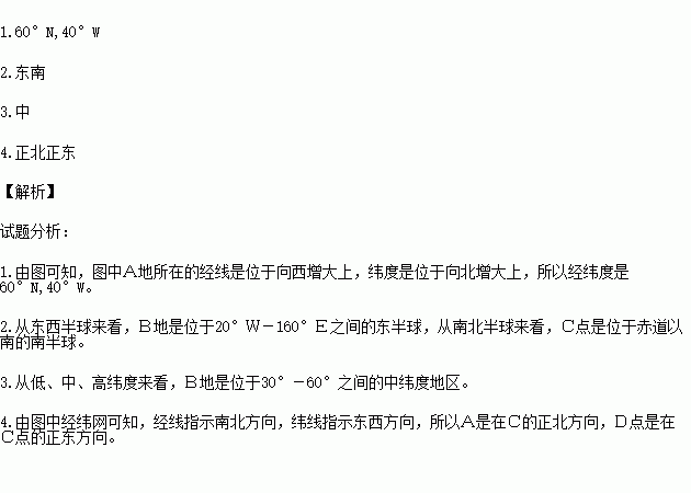 1.A点的经纬度是( 、 ),B点的经纬度是( 、 )。