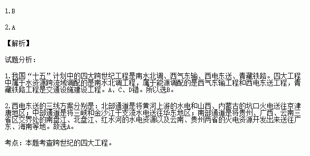 A.西气东输 B.青藏铁路