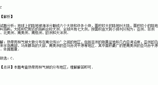 (5)读图可知:全部在北半球的大洲是