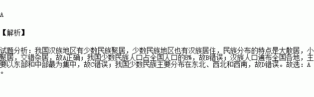 我国民族分布的特点是![]()