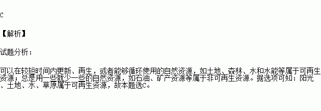 C、阳光,土地,水,草原 D、风,阳光,水,天然气,铝土矿