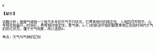 我国古代诗人为我们留下了许多反映天气或气候的美妙诗句,下列反映气候的是