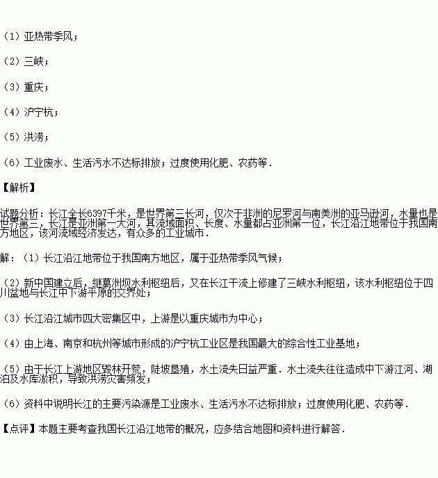 (6)根据资料说出长江的主要污染源: .