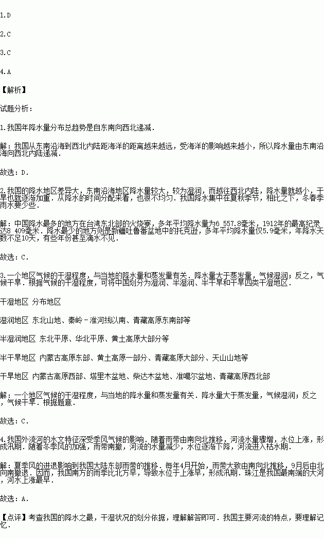 1.关于我国年降水量分布总趋势的描述,最准确的一项是( )