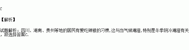 我国四川、湖南、贵州等地的居民有爱吃辣椒的习惯,这与下面哪项因素有关( )