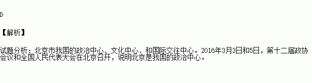 2016年3月3日和5日,第十二届政协会议和全国人民代表大会在北京召开,说明北京是我国的