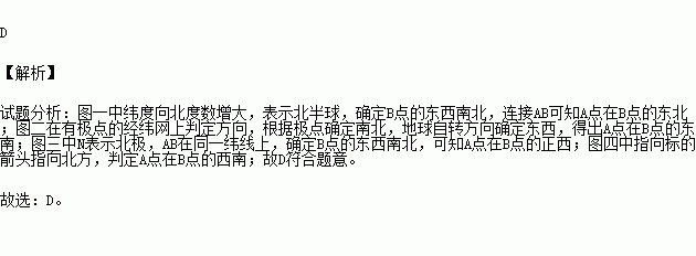 下列四幅图中按A在B的方向排序,正确的是 ( )