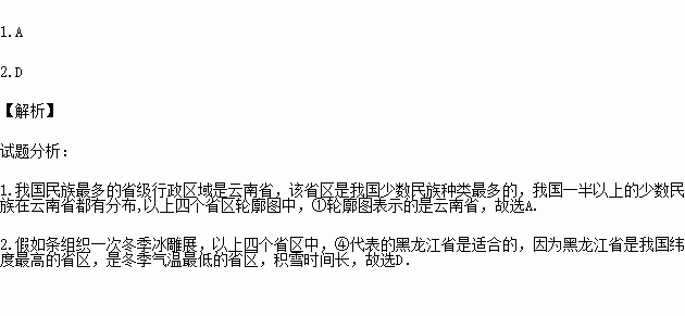 下图是我国四个省区的轮廓图,读图回答下列问题。