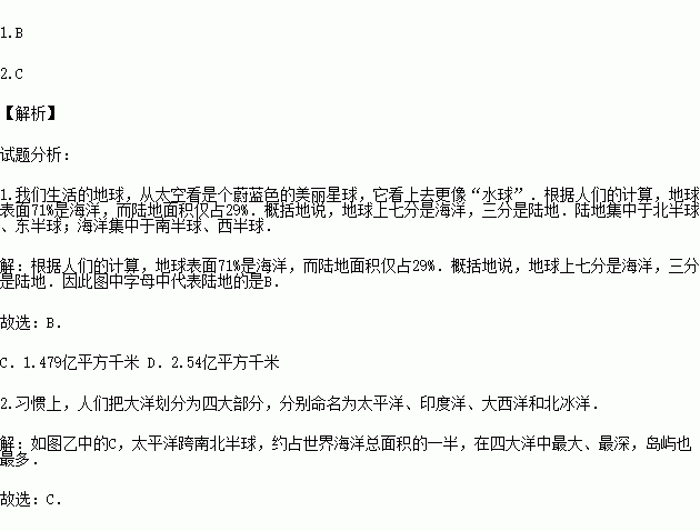 2.甲乙两图中四个字母中代表太平洋的是( )