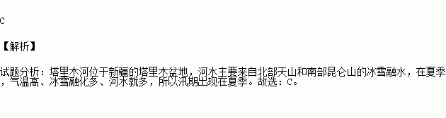 A.雨水,夏季 B. 雨水,冬季 C. 冰雪融水,夏季 D.冰雪融水,冬季