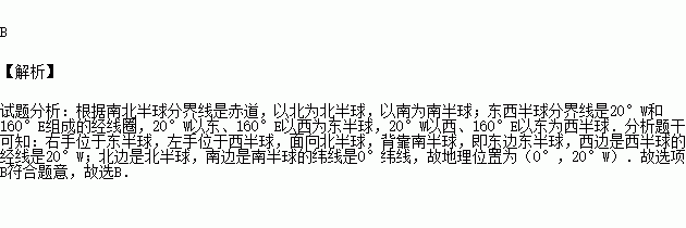 一游客在旅行日记中写到:我到了世界上一个神奇的地方,我右手在东半球,左手在西半球,面向北半球,背对南半球。这个地方是下图中的( )