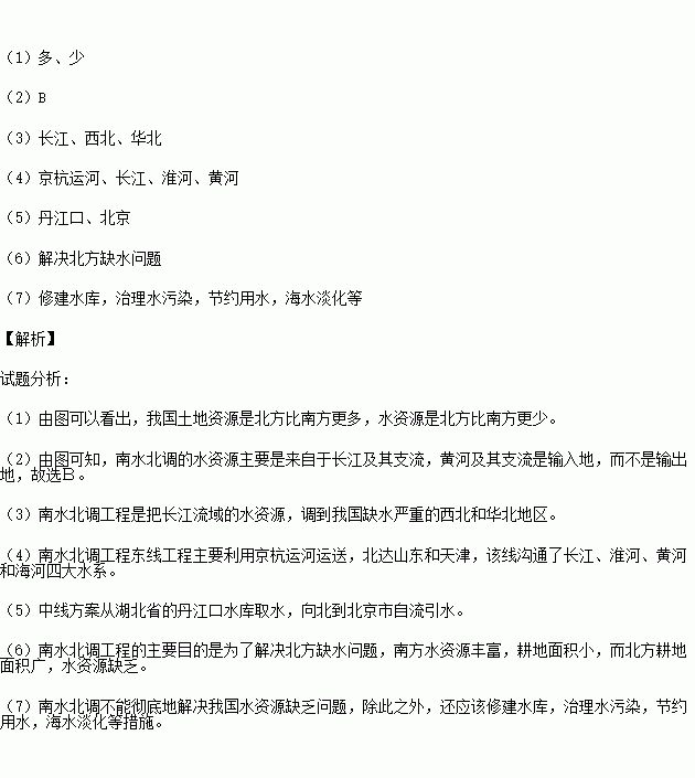 (1)我国土地资源北方比南方 (多、少),水资源北方比南方 (多、少)。