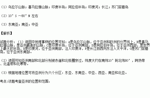 (2)请你估算一下亚洲所跨的纬度范围。