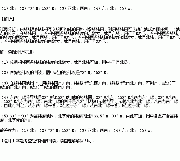 (5)图中各点符合高纬度,北寒带的是 (填字母).