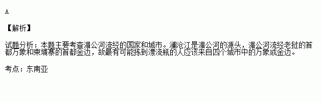 小明为结交外国朋友,他特意制作了一张精美的个人资料卡片,装进一只漂流瓶中,然后丢进了澜沧江,最有可能拣到漂流瓶的人所在城市是