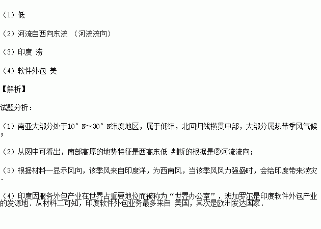 (4)根据材料二表明印度 产业在世界占重要地位,图示该业务主要来自 国。