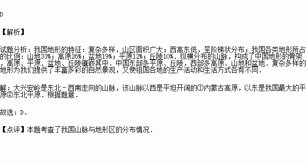 D.①内蒙古高原 ②东北平原