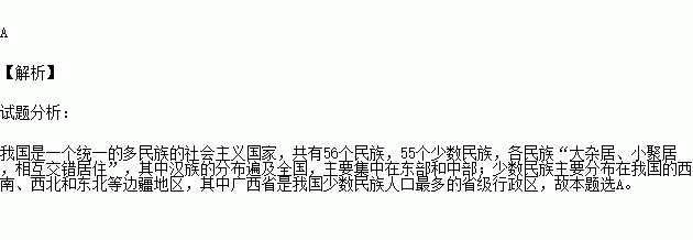 “五十六个民族,五十六枝花,五十六个兄弟姐妹是一家……”,这首歌曲唱出了各族人民的心声。请你判断,我国人口最多的少数民族主要所在省(区)是:
