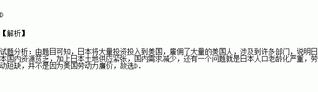 20世纪80年代至今,日本在美国投资已达1万亿美元,雇佣了近7万美国人,涉及到钢铁、汽车、电力及电子等工业部门。对日本采取这种发展方式原因的描述,不正确的是