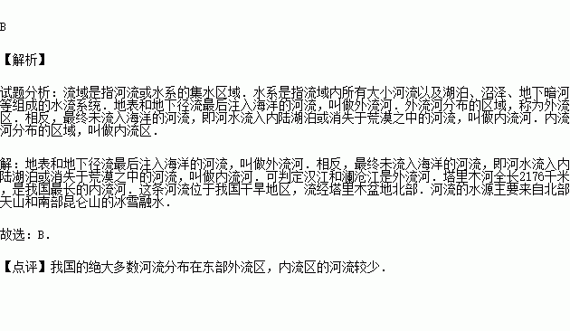 B.塔里木河是内流河,因为它最终没有流入海洋