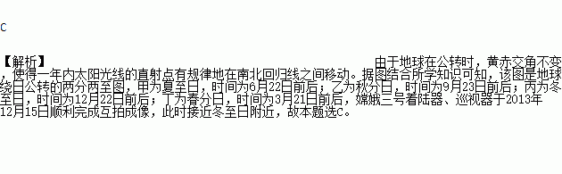 嫦娥三号着陆器、巡视器于2013年12月15日顺利完成互拍成像,标志着我国探月工程二期取得圆满成功.据此回答:互拍成像完成时,地球公转位置最接近如图中的( )