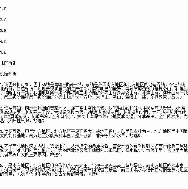 5.下列景观属于丁的是( )