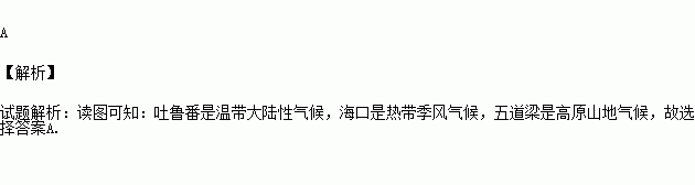 C.吐鲁番——高原气候和高山气候 D.五道梁——热带季风气候