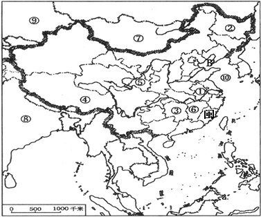 (4)我国是世界上重要的海洋大国,大陆海岸线长达1.8万多千米,从北到南,濒临的海洋依次是渤海、黄海、东海和南海.依据位置,图中数字⑩是我国的黄海.