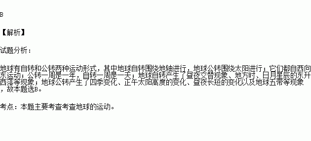 D. 公转使地球上产生了昼夜更替现象