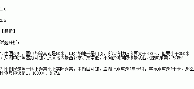 A.甲处地形部位的名称是山脊 B.甲处的海拔约为258米