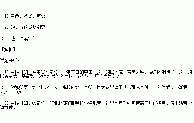(1)①所在地区的居民属于________人种,④所在地区的居民多信仰________教。②所在国家通用语言是________。