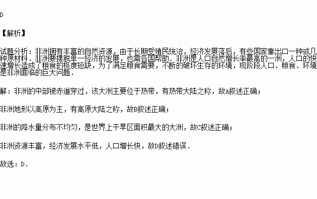 D.资源缺乏,经济发展水平低,人口增长缓慢