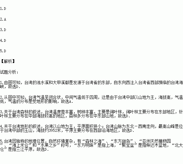5.下列属于台湾岛美称的是( )