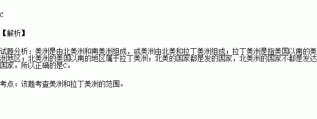 A.美洲地区由北美洲和拉丁美洲两个区域组成
