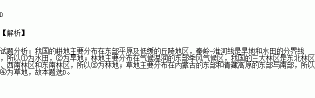 下图表示我国土地资源分布情况,序号与名称对应都正确的是( )