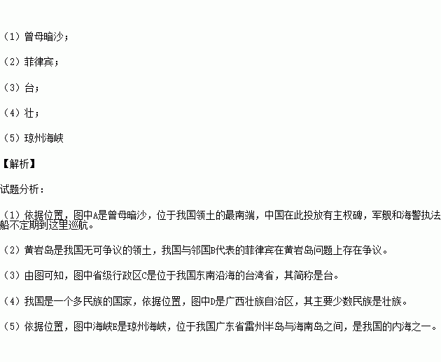 £¨1£©ÎÒ¹úÁìÍÁµÄ×îÄ϶ËAÊÇ_________£¨µº½¸£©£¬ÖйúÔÚ´ËͶ·ÅÓÐÖ÷Ȩ±®£¬¾ü½¢ºÍº£¾¯Ö´·¨´¬²»¶¨ÆÚµ½ÕâÀïѲº½£®