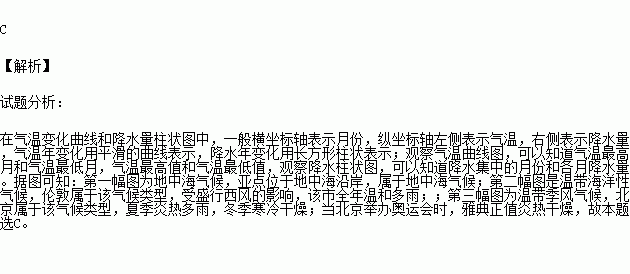 2004年.2008年.2012年夏季奥运会分别在雅典、北京和伦敦举行,下面是三地的气候资料,据此判断下列说法正确的是
