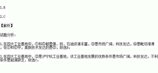 1.煤、铁、石油资源丰富,高新技术发达的工业基地是( )