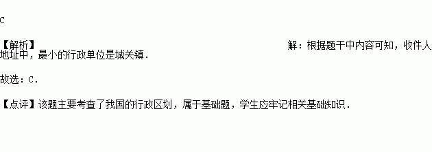 谭雅在网上购买了几本书,收件人地址如下:湖南省茶陵县城关镇云阳中学谭雅(收),收件人地址中,最小的行政单位是( )