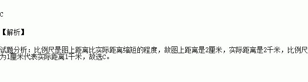 在地图中,A、B两地之间的图上距离是2厘米,实地距离是2千米,则该地图的比