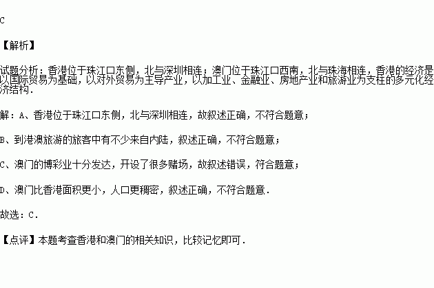 B.到港澳旅游的旅客中有不少来自内陆
