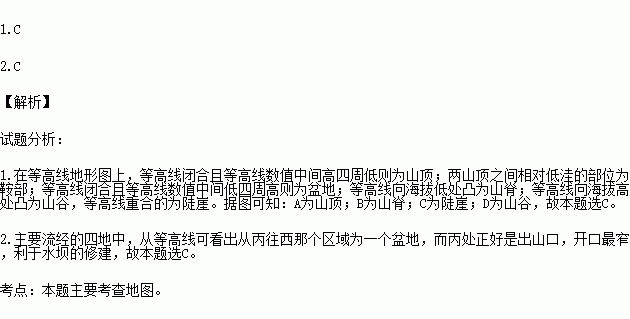 2.为了加强农田基本建设,实现旱涝保收,村民拟在图示地区建一蓄水量最大的水库,合适的坝址是( )
